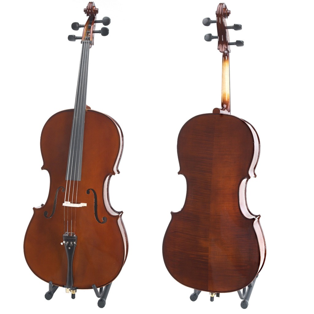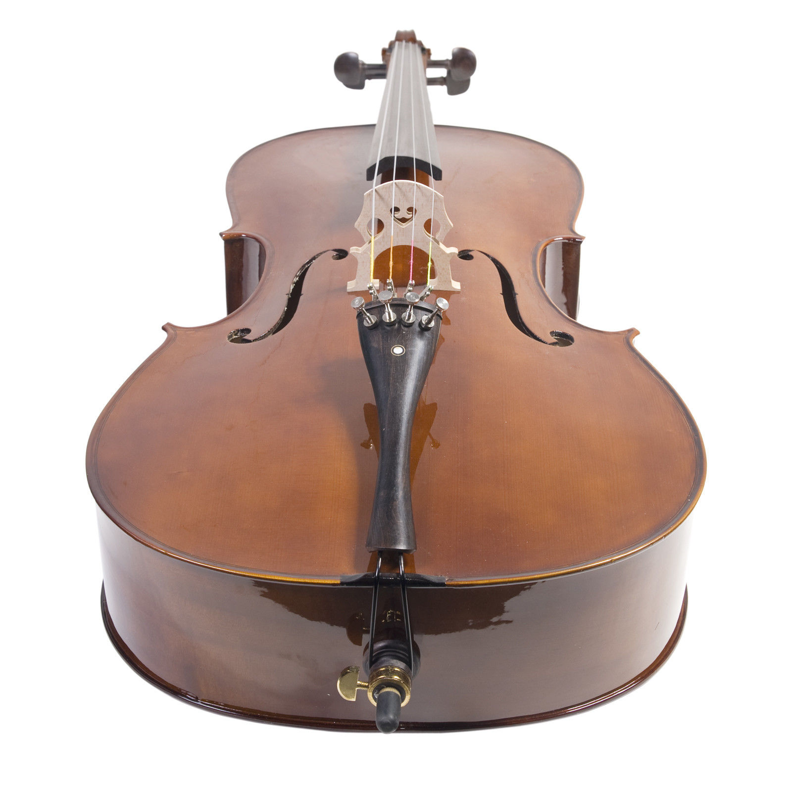 VC100 student cello is perfect for beginners and musicians on a budget.  It is made of basswood, has a hardwood fingerboard and pegs, a spruce top, and an alloy tailpiece.  Includes a soft gig bag.  Bow sold separately.